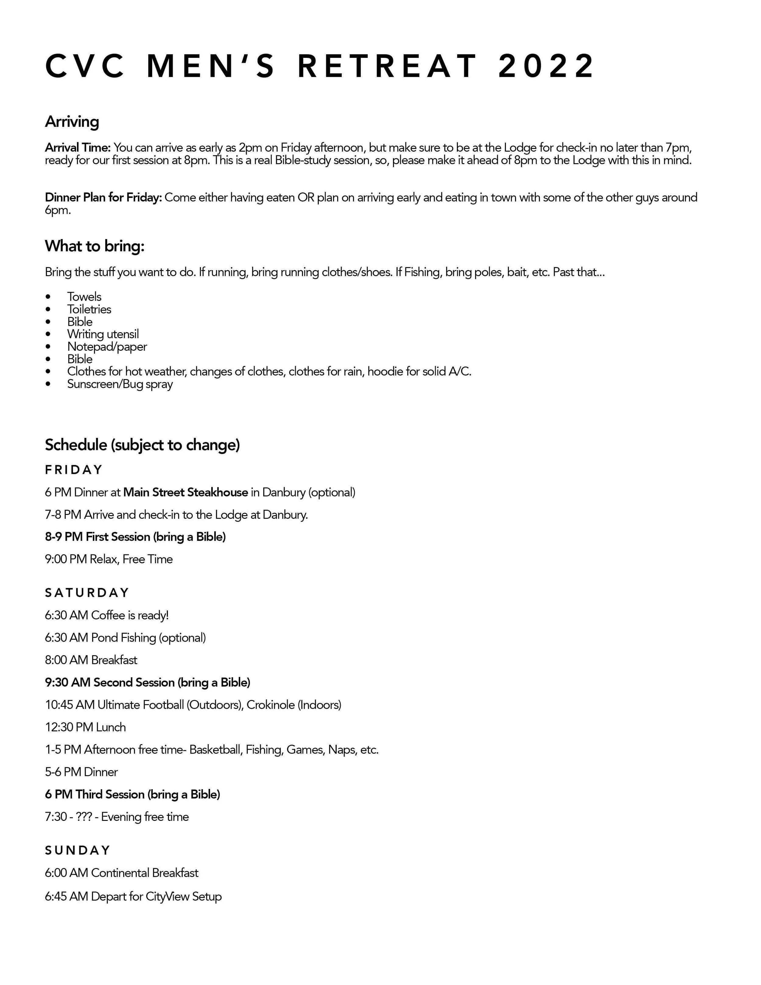 CityView’s Men’s Retreat 2022 will be at The Lodge at Danbury, from January 7th through the 9th.